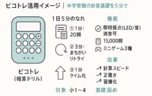 - 算数:大問1・2は満点狙い。30秒迷ったら飛ばす。